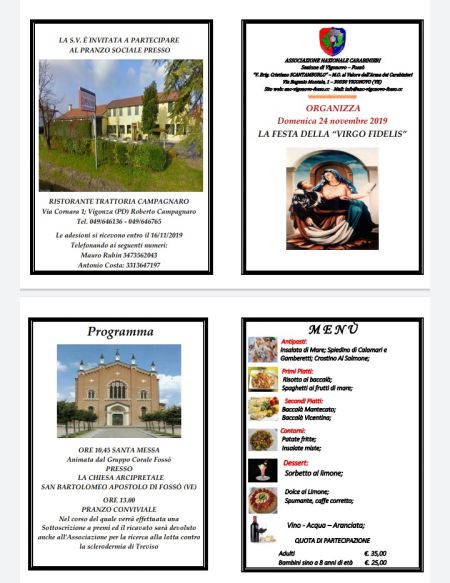 Festa della Virgo Fidelis 2019 Domenica 24 novembre 2019 presso il Ristorante Campagnaro di Vigonza (PD) si è tenuta la Festa della Virgo Fidelis. Precedente Successivo